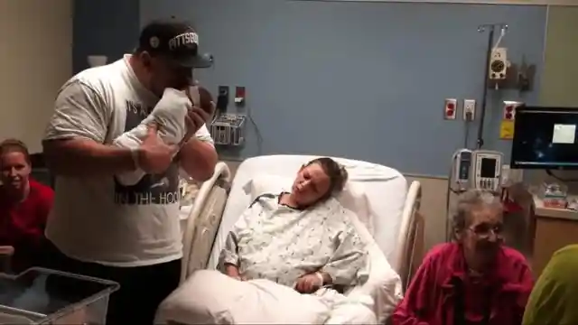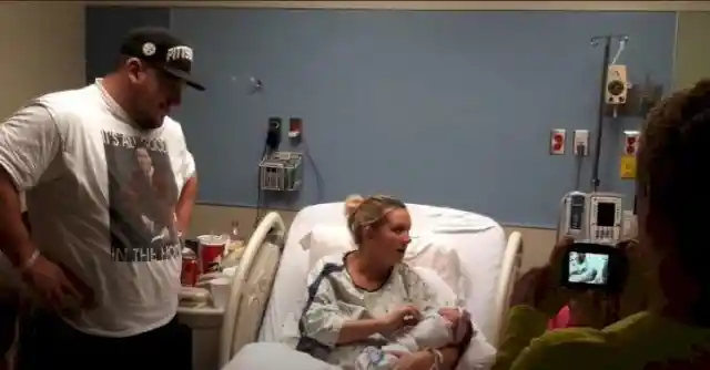 Lauren was finally able to untuck her new baby from the very tight blanket. With everyone eager to see the face of their new family member, Lauren felt all eyes on her.