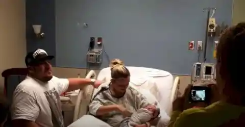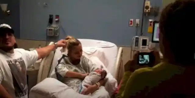 With Lauren’s shrieks getting louder and louder, confused family members suddenly caught a peek at baby Eveoyn’s attire. It was a onesie, but it wasn’t the same one she was wearing before getting cleaned up by the nurse.