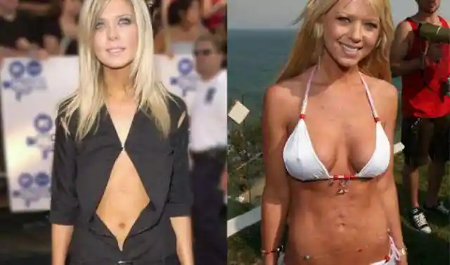 Thankfully, the well-known actress Tara Reid didn't destroy her beautiful face with plastic surgeries. However, in 2004 she had breast implant surgery and liposuction and sadly they didn't go well.
