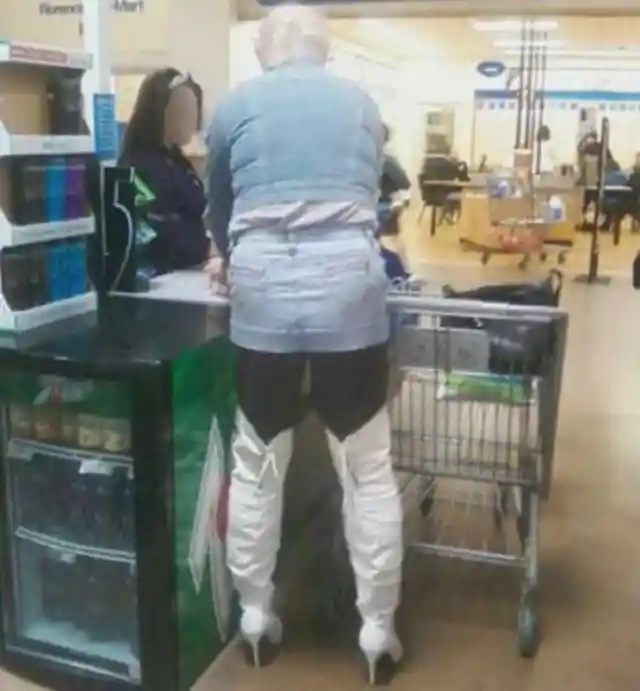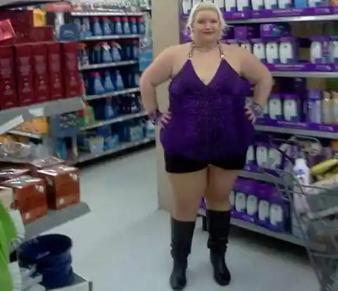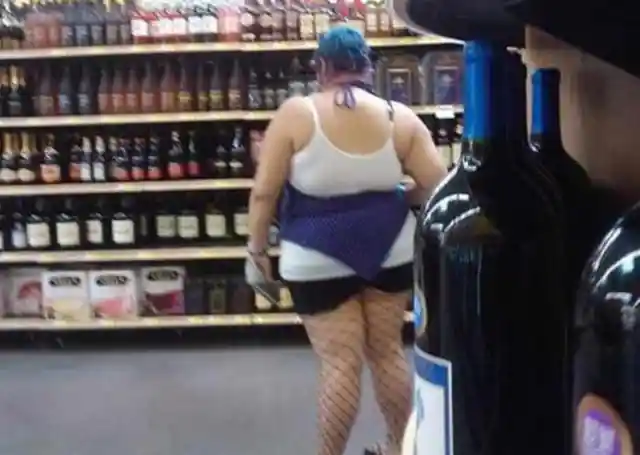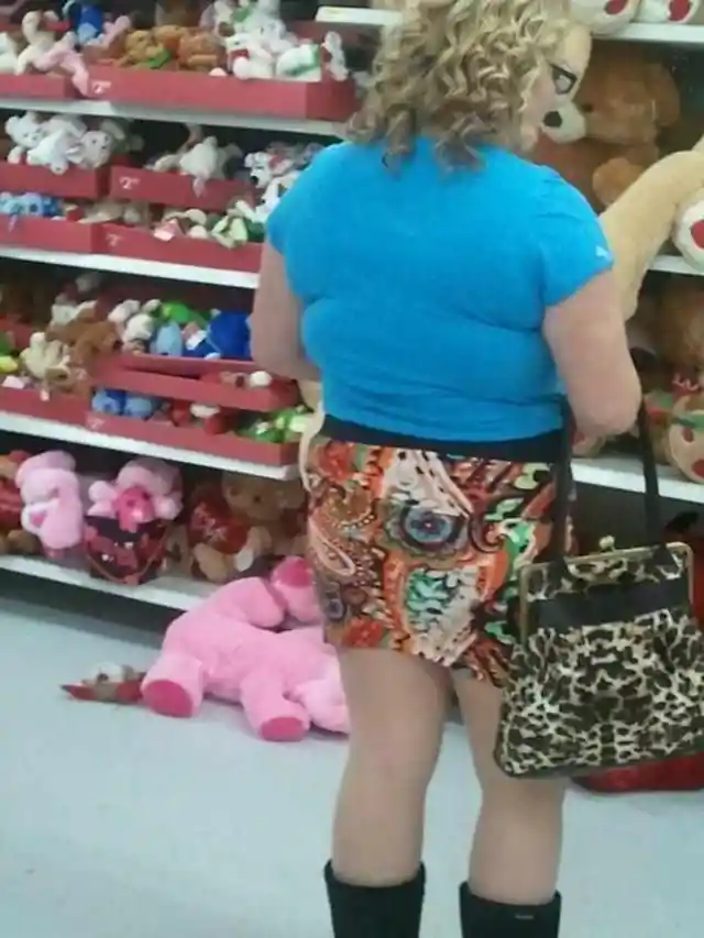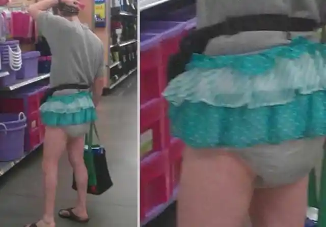 Any fashion police who saw this would probably be at a loss for words. We're just wondering why anybody would feel as though wearing a mini skirt to Walmart would be a good idea.