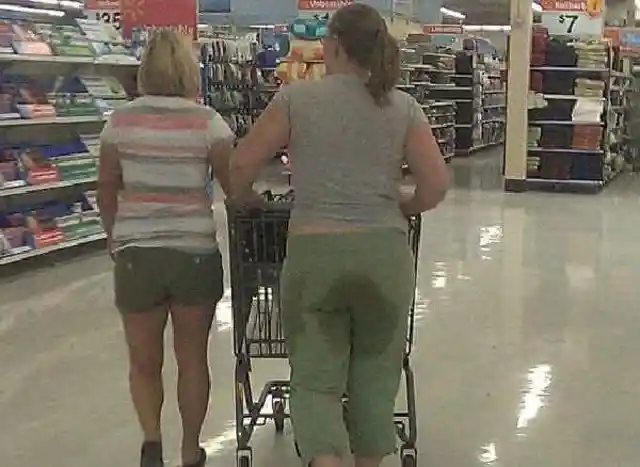 Scenario 2: she pi**ed herself on the way to the store. Luckily, it doesn’t really matter if the answer is 1 or 2 because, thankfully, Walmart sells both new pants and washing detergent.